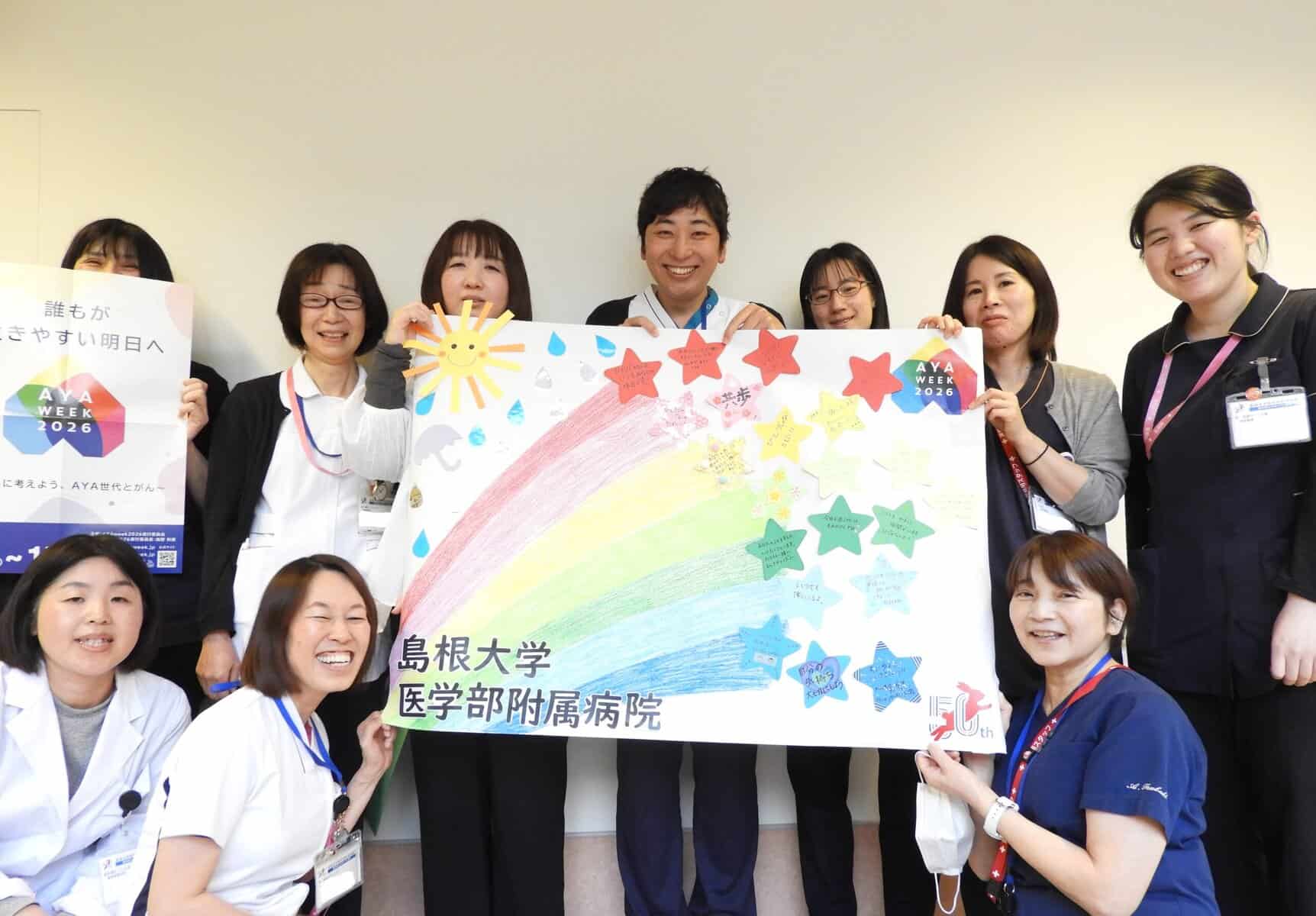 当院ではAYA世代を応援するために、院内各職種の協力のもと、応援フラッグを作成しました。フラッグは外来診療棟1階コンビニエンスストア横の柱に掲示してありますので、ぜひご覧ください。